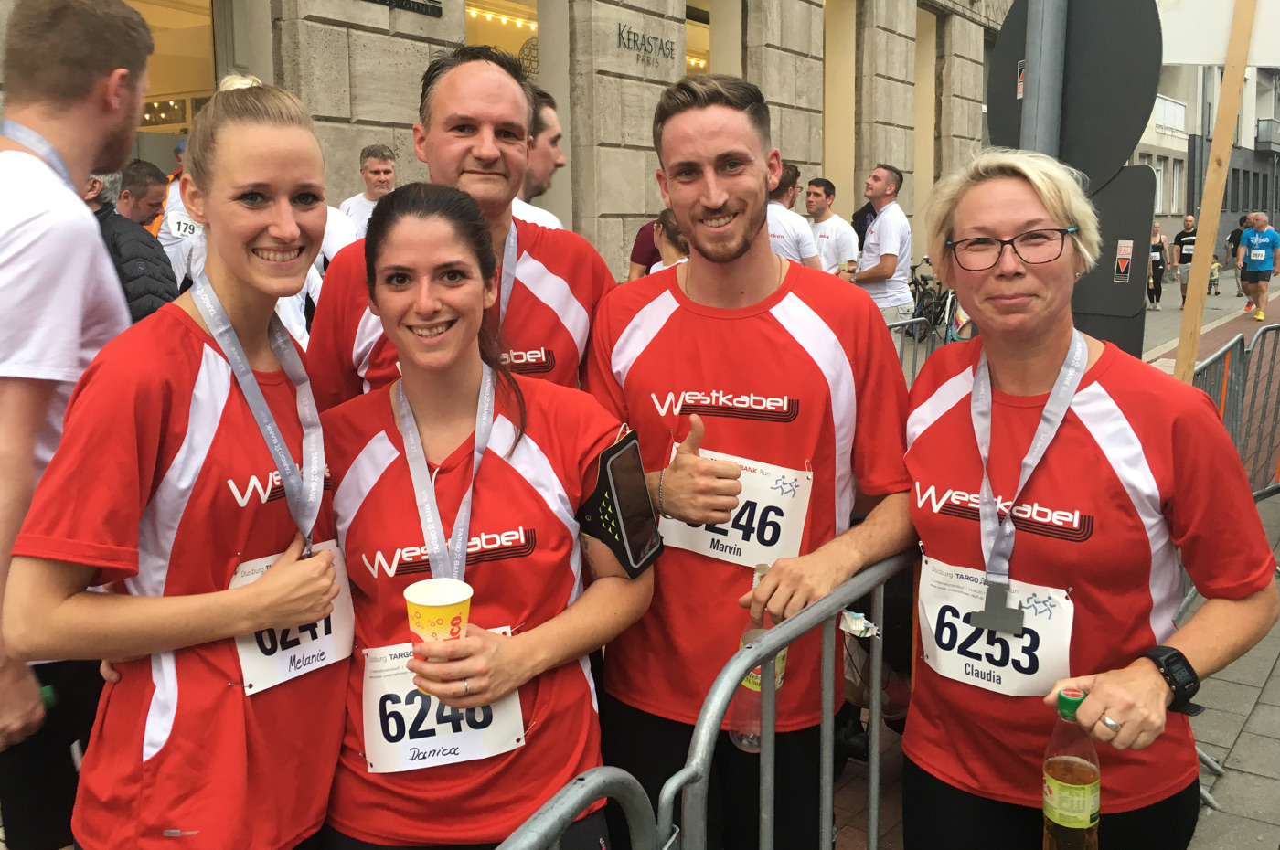 Zur nunmehr dritten Teilnahme am Targobank Run waren wir mit einer etwas kleineren Mannschaft am Start. Insgesamt 9 Teilnehmer haben für Westkabel die rund 5,5 km lange Strecke in Angriff genommen. Die Bedingungen waren optimal und alle Teilnehmer kamen erfolgreich ins Ziel. Vielen Dank an Uwe, Claudia, Oliver, Claudia, Marcel, Jürgen, Marvin sowie Melanie und Danica.